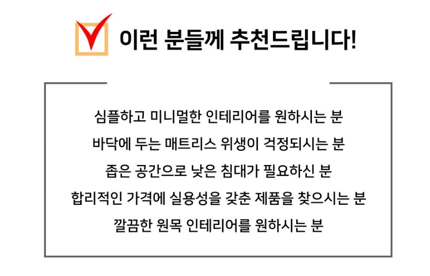 환경에서 꼭 침대 프레임으로 사용하는것이 아닌 받침대 역활로도 사용이 가능할거같습니다.
