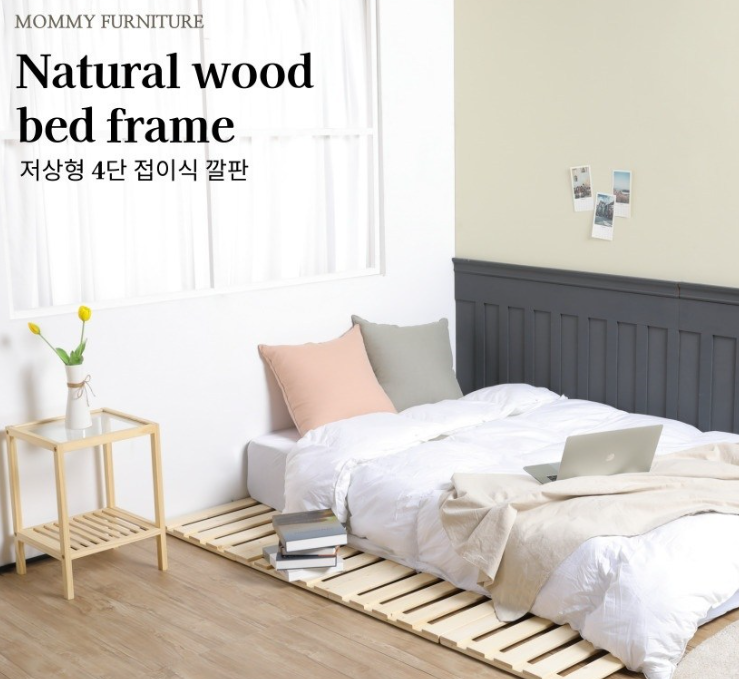 엄마가구 4단 소나무 통원목 침대 매트리스 접이식 깔판 SS - 침대부속가구 | 쿠팡